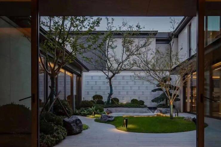 各户型均纵向分层,互不干扰。首层为三代同堂空间,根据户型的不同,庭院开间约7~12米,客厅开间约8~12米,二层为私密独立卧房,地下二层为社交会客空间,地下一层为书房、茶坊、客房等多功能空间。