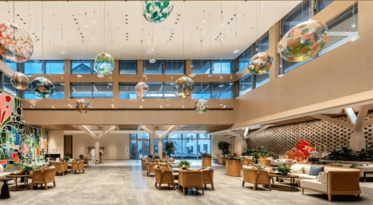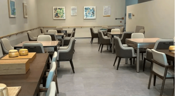 在公共区域方面,泰康之家苏园养老社区配备了餐厅、活力中心、图书馆、健身房、游泳池、康复中心、手工艺室、书画室、棋牌室、舞蹈室、茶艺室等设施,为老年人提供了丰富多彩的休闲娱乐和学习交流空间。餐厅提供营养均衡的膳食服务,满足老年人的饮食需求;活力中心则根据老年人的兴趣爱好,提供多样化的活动和课程,如瑜伽、钢琴课、手工艺制作等,让老年人能够在这里找到属于自己的快乐时光。