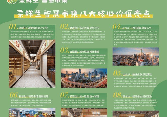 政府大力推动‘智慧农贸’升级,未来市场环境、管理、客流都会提升,商铺价值看涨。