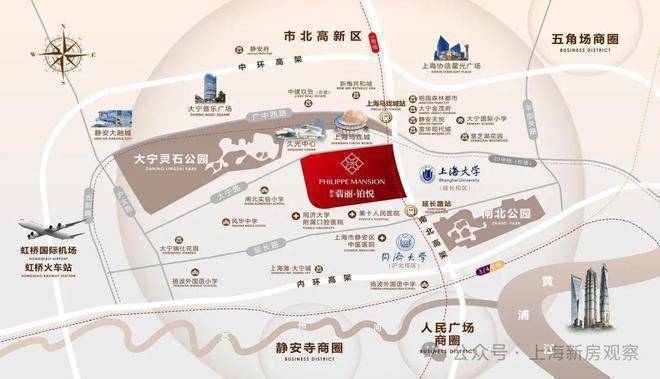 辐射商圈:人民广场商圈、静安寺商圈、徐家汇商圈、五角场商圈