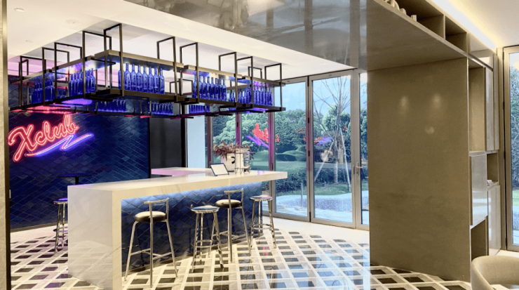 还有吧台、休闲洽谈区、共享会议和健身等功能区,是一个适合交友、会客、休憩、工作、读书、赏景的多功能空间.处处可见的时尚元素,符合当下年轻一代喜好。