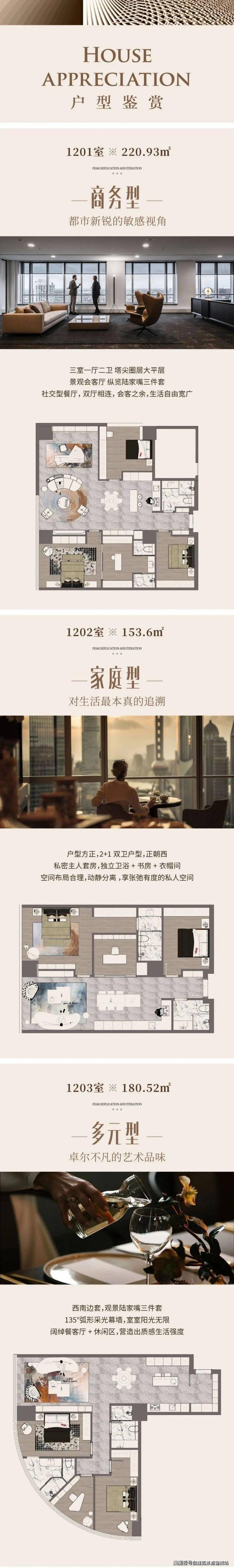 户型:建面109-220㎡的2-4房,法式轻奢装修,得房率70%