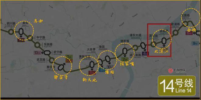 14号线贯通浦西浦东全市级核心商圈金桥商圈、陆家嘴商圈、豫园商圈、新天地商圈、静安寺商圈。