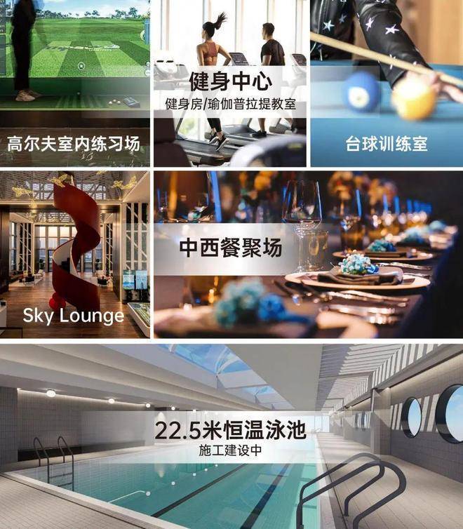 对标5000万级顶豪的3500㎡会所, 空中露台、Sky Lounge、22.5米恒温四季泳池、室内高尔夫练习室 ……妥妥的都会精英高端社交场。