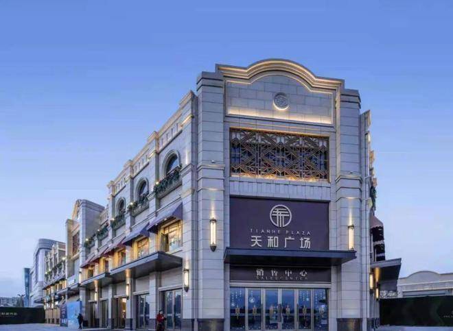 天和广场整体建筑整体风格为法式建筑风格,主外立面为全石材干挂,高端大气,