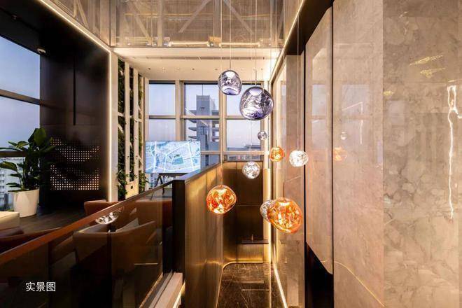 27层Sky Lounge以全景落地窗框住流动的城市画卷,陆家嘴三件套与世纪公园绿脉在玻璃幕墙外昼夜更迭。红色旋转楼梯和金色吊灯交相呼应,空间美学始终贯穿其中。日咖夜酒、社交、下午茶,甚至连谈生意都能足不出户,在皮质沙发与手冲咖啡香气之间自如切换。