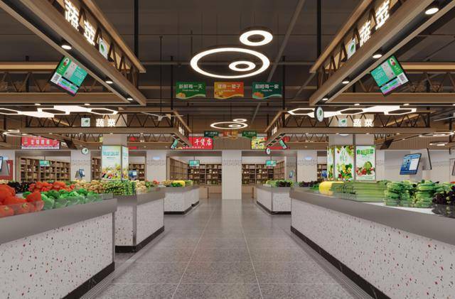 美观大气的市场外立面,超市式的农贸市场购物环境 ;