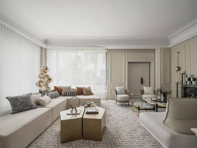 5. 臻稀在售城市公馆:外立面全进口葡萄牙米黄石材干挂+ 高品质精装修 + 私人管家式服务;