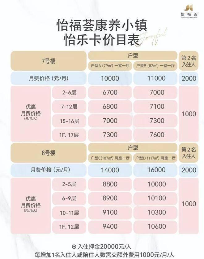怡福荟的收费价格在每月6000元至16000元之间,具体费用根据所选服务项目和居住条件的不同而有所差异。