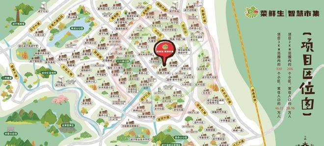 项目3公里常驻人口达 46 万人口,不光有固定的住宅消费人群,还有2000多家的饭店餐厅,这部分的餐饮店,对农贸市场的需求是具大的。另外我们项目周边学校、医院和企业众多,他们食堂的采购也是非常巨大的一个数字量。