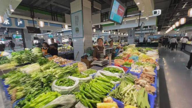 改造后菜场面积达8925平方米,共有154个标准化摊位,涵盖鲜肉、蔬菜、水产等17类农副产品,还有众多新塍美食。2024年新推出的共富直播间,实现了“田头到灶头”的无缝衔接,线上直播带货更是让嘉兴特色农产品美名远扬。