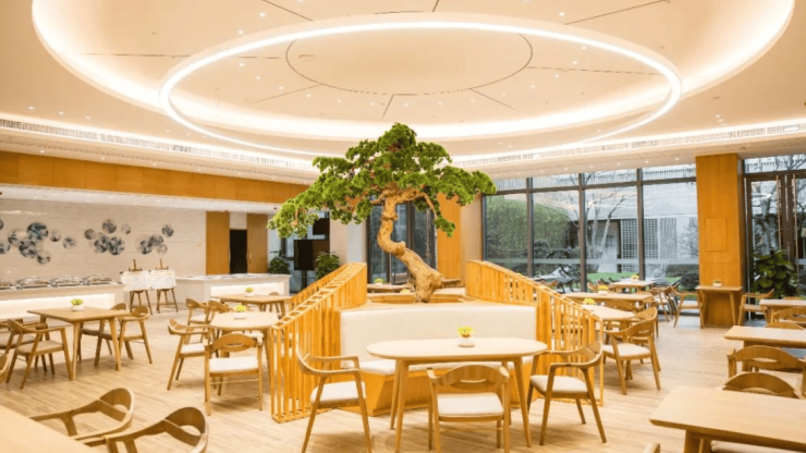 作为广州本土高端养老品牌,广州保利天悦和熹会颐养中心深度融入“花城”基因。建筑以“广府新中式”为设计理念,镬耳墙与玻璃幕墙碰撞出传统与现代的对话,院内曲水流觞的园林中,木棉、紫荆与岭南盆景错落有致。公共区域设置“珠江文化长廊”,展示广绣、牙雕、端砚等非遗作品,定期举办“非遗手作课”,让长者近距离感受传统文化魅力。