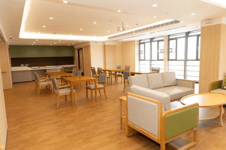 乐谷颐养中心以长者安全与舒适为核心,全屋高标准适老化设计,细节尽显人文关怀。院内提供单人间、双人间、多人间及康养套房,面积 25-80㎡,空间宽敞通透、采光通风优良,满足不同家庭预算与居住偏好。所有房间均配备独立卫浴、防滑地面、无障碍扶手、专业护理床、智能温控、新风系统及 24 小时热水,床头与卫生间双置紧急呼叫按钮,一键快速响应照护需求。公共区域功能完善,设有康复训练大厅、文娱活动室、阅览书画区、休闲花园及记忆怀旧专区,配备康复机器人、平衡训练仪、健身器材、棋牌文娱设备等,每日组织书法、手工、合唱、保健操、园艺疗愈等丰富活动,促进社交互动、缓解孤独情绪,提升精神生活品质。院区绿化覆盖率超 65%,庭院式布局、闹中取静,营造生态宜居的康养氛围。