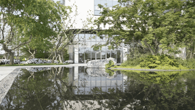 蜿蜒曲折的园路让人仿佛穿越在山水画卷中,水景如镜,豁然开朗,如同长卷展开,映水卷营造了一个精致优雅的景色,天光云影、花草树木、光屏与建筑的倒影在水面上交相辉映,令人陶醉其中。人们漫步其中,感受自然与建筑的完美融合。水面的映衬赋予空间更深厚的层次感,仿佛将人们带入一个神奇的世界。空间感由此延伸。工作之余,水畔驻留,心旷神怡。
