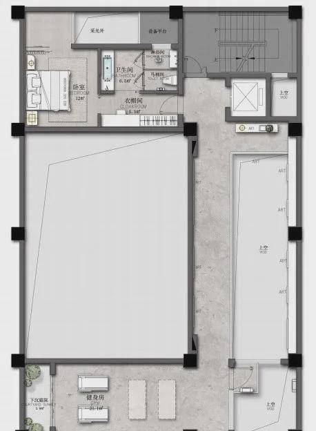 ⑤地下室设计6米挑高客厅、附有下沉式花园采光天井、豪华装修交付标准、带电梯