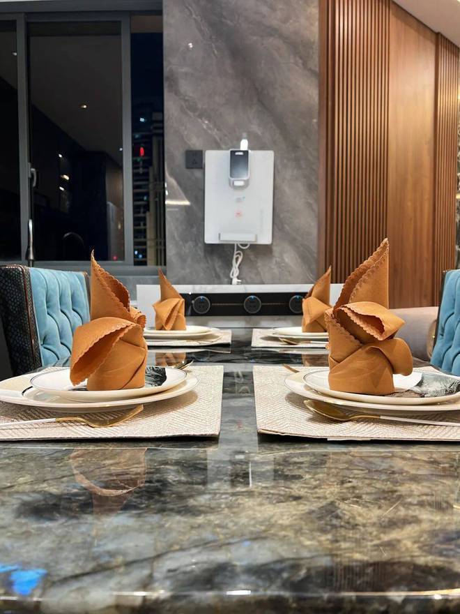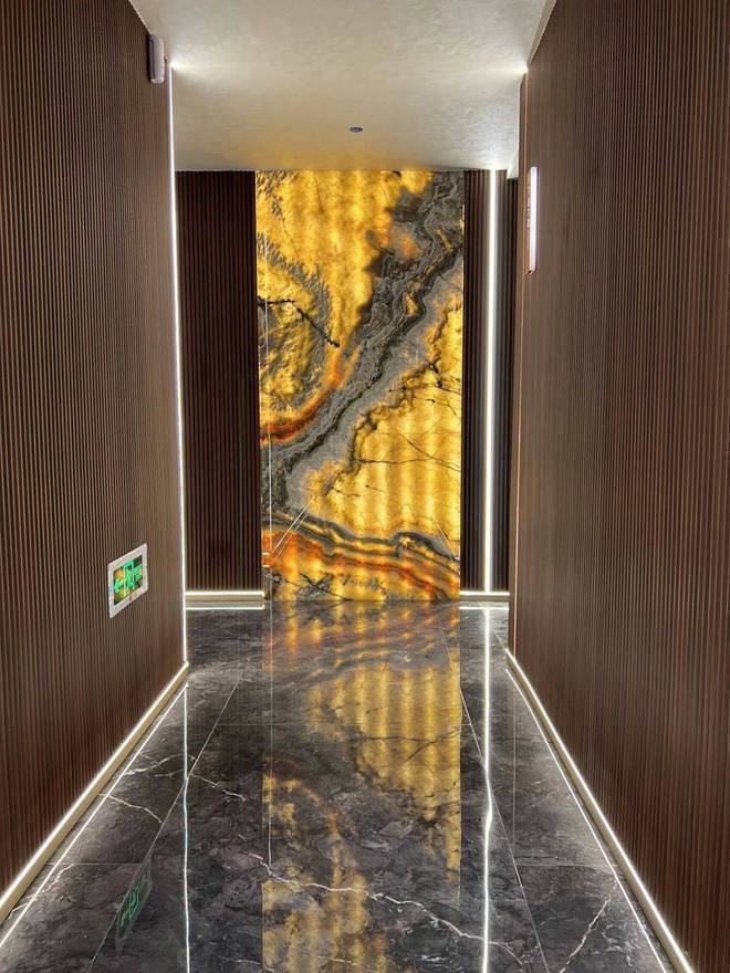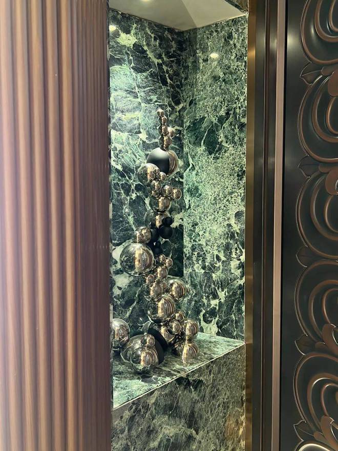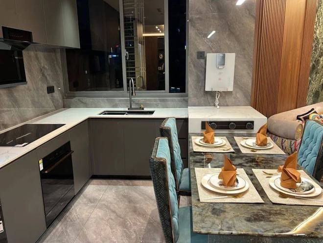 值得一提的是,公寓对标汤臣一品的品质,全屋采用华为的鸿蒙智能系统,全系配备国际一线品牌BOSCH(博世)定制家电,格调非凡。公寓从公区到室内装修,由知名豪宅团队设计,利用铜与玉石的天然本色为设计元素,寓意珠联壁合,体验“奢石”人生。