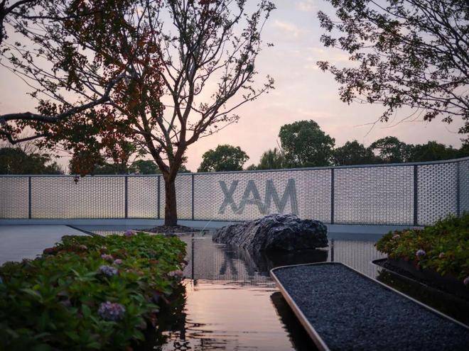 洽谈区掩映在绣球花径与娜塔栎的树影婆娑之中,水系环绕,背靠浓密的植物背景,打造静谧的户外会客空间,将人们带入一个诗意与雅致并存的境地。悬浮于水面的苔藓案台,从远处的水景一直延伸到会客区中央,与潺潺涌泉、天然置石、雅致植物相结合,如精致盆景一般的微观山水,展现山水美学的精髓和品味。一抹浮苔,将会客区的视线引向远处的景观,营造疏朗惬意相互渗透的空间。