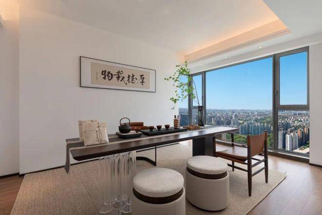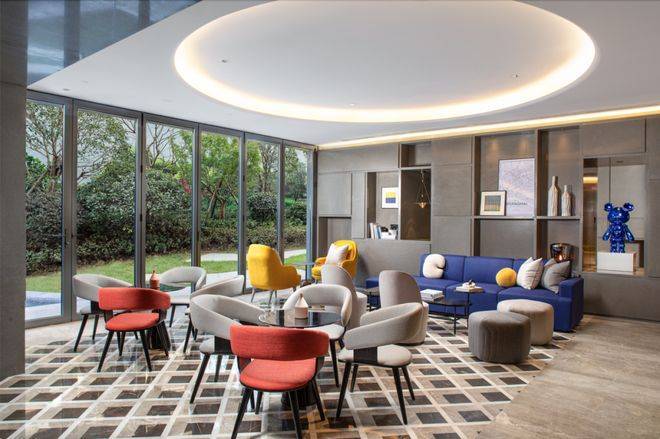 约9米超高挑空大堂:会客休息区分立礼宾台两侧,艺术作品萦绕四周,使每个置身于此的人都能拥有酒店级的尊贵感受;公区集合多位艺术家为TODTOWN天荟|悦麟度身创作的多维艺术品,包括环境音乐、环境香氛、雕塑、油画等,前卫的设计感和高品质的呈现力,营造出多重感官享受的艺术享受。