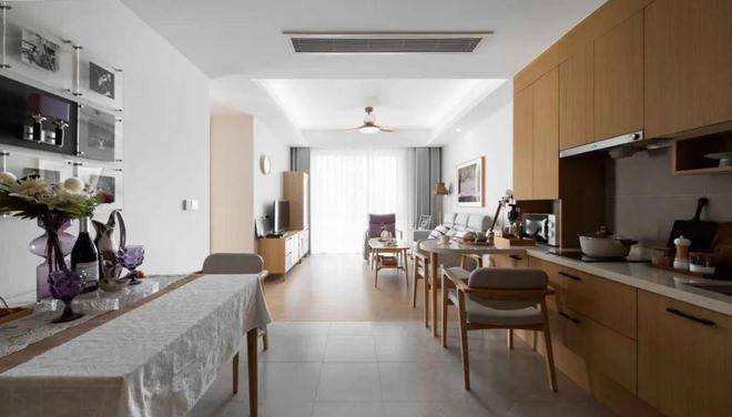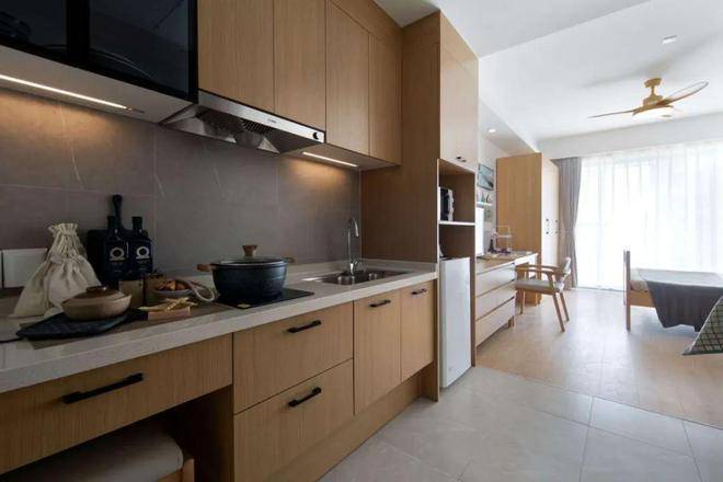 房间均为南向,精装修,配备全套家具、家电。室内整体采用原木色设计,布置很温馨。