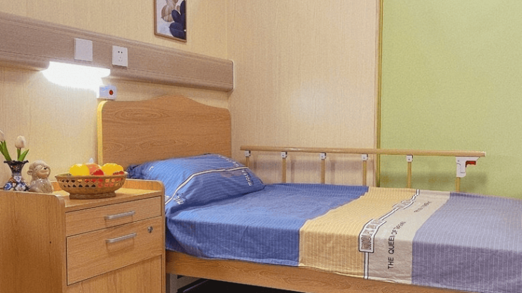 走进居住空间,每间房间都经过精心设计,配备了智能呼叫系统、防滑地板、安全扶手等适老化设施。床头柜高度经过人体工学测算,方便轮椅使用者自主取物;独立卫生间、空调、储物柜及紧急呼叫按钮一应俱全,床头还配备了可调节阅读灯,满足个性化需求。房间布局注重采光与通风,采用浅色系装修风格,营造温馨明亮的居住氛围,让长辈仿佛置身于家中一般舒适自在。