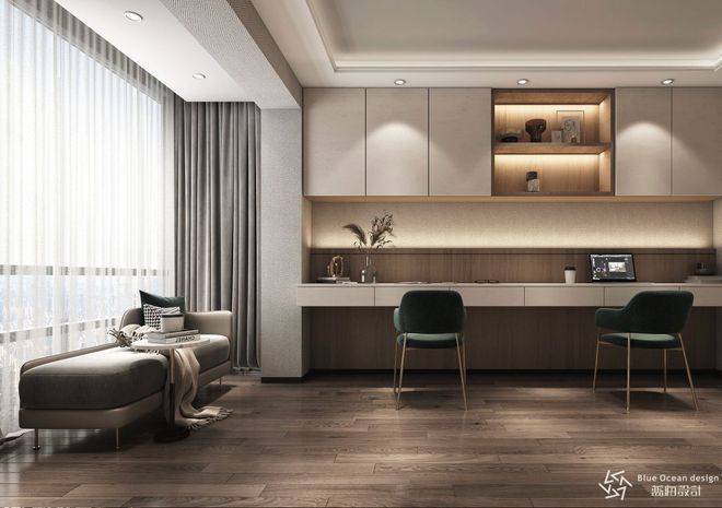 洽谈区在素色氛围的基础上点缀绛红色融合