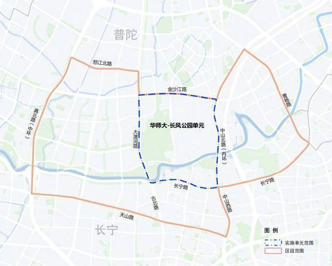 校园风情段更是普陀的主阵地,东起曹杨路桥西至真北路桥,段落内坐落了华东师范大学和华东政法大学两所高等院校,区段内包含华师大-长风公园1个实施单元