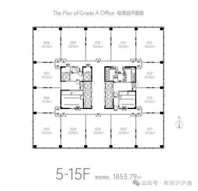 二楼及以上办公:单套95-196㎡