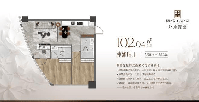 户型面积98-110平米,外滩之畔,金陵东路,豪华不限购公寓