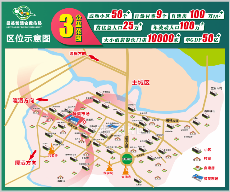 西双版纳·曼弄枫-曼英核心地段全业态在售6000方,纯一楼智慧型农贸市场