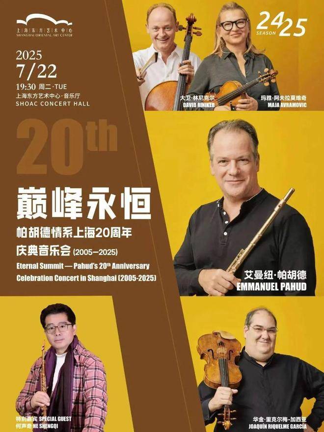 这个7月,东艺的星光音符汇聚成璀璨星河,继7月7日十二把大钢琴拉开东艺廿载夏日序幕后,“当代长笛之王”艾曼纽·帕胡德将于7月22日携手柏林爱乐乐团的小提琴家玛雅·阿夫拉莫维奇、中提琴家华金·里克尔梅·加西亚、大提琴家大卫·林尼克尔,并特邀中国长笛领军人何声奇加盟,续写音乐的巅峰永恒。