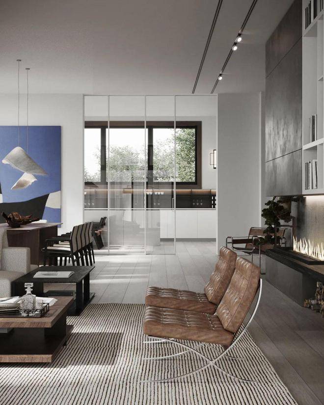 所有空间都用透明玻璃门作为隔断,让光线在空间得以延伸。
