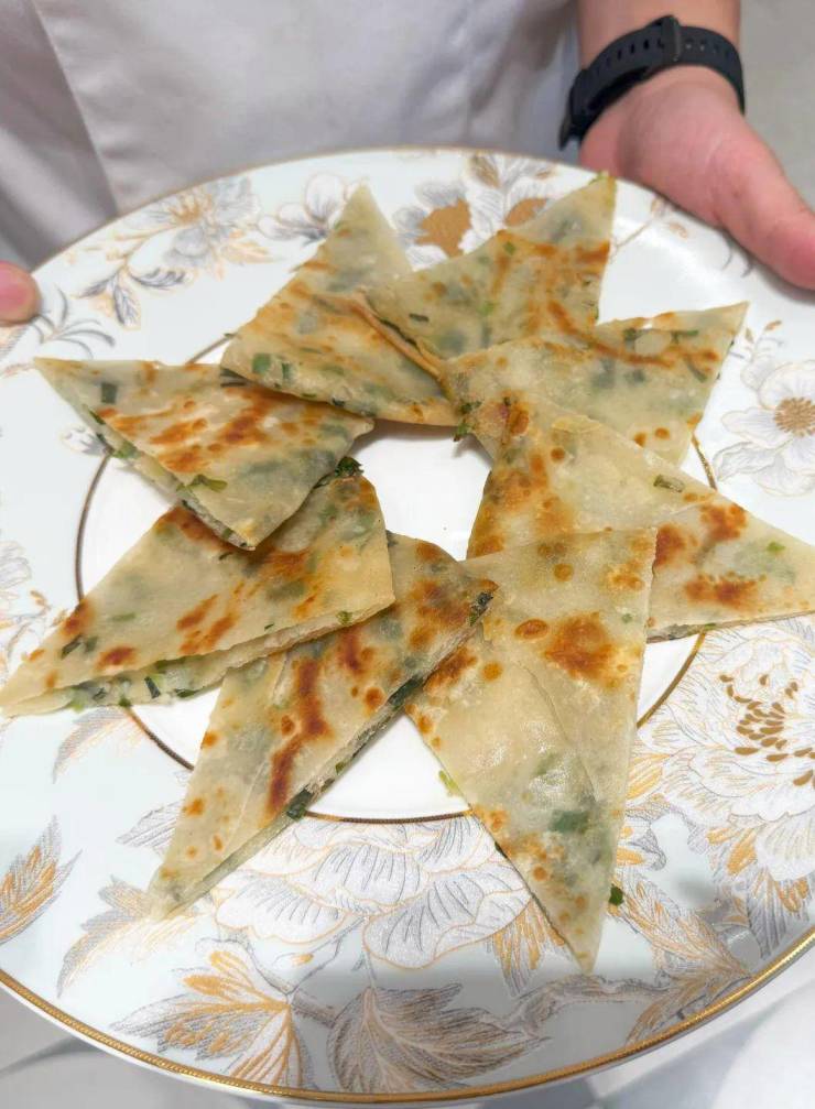 刚出锅的家乡葱油饼冒着热气,金黄的外皮上泛着油光,还没凑近就能闻到葱花的清香。