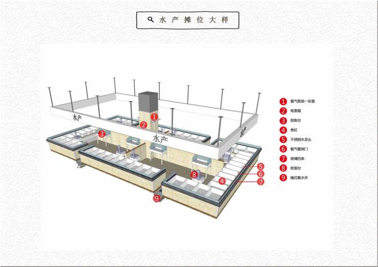 2.水产区:给排水专业设计,展示缸大气美观。
