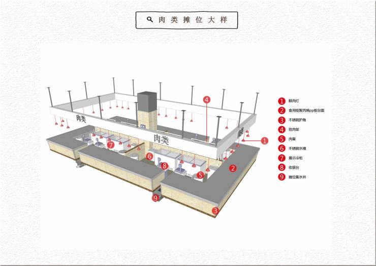 1.鲜肉区:干湿分离,冷链配套齐全。