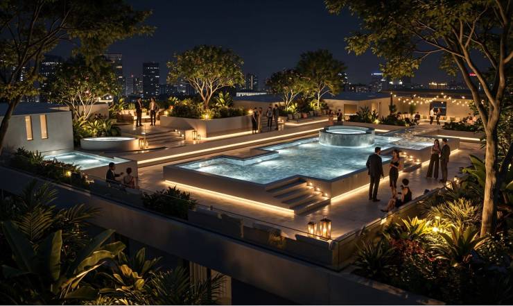 高端配套:配备专业健身房、自助洗衣房、多功能宴会厅、商务会议室,更打造了3000㎡楼顶恒温泳池——这是乌镇目前的楼顶恒温泳池,成为项目的核心差异化优势;