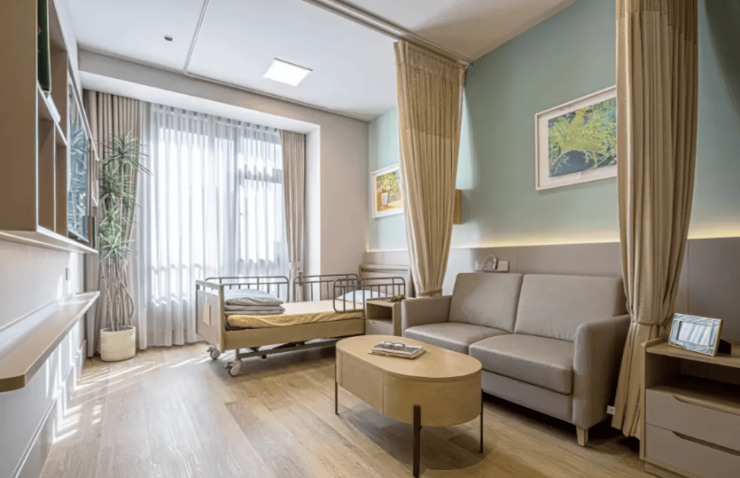 东区:聚焦健康长者需求,规划281套康养公寓,提供单人间、双人间及一室一厅等多元户型。公寓采用全南向设计,层高3.2米,采光充足,每户配备紧急呼叫系统、无障碍设施及适老化家具。房间内电动晾衣架、防滑地板等细节设计,兼顾实用性与安全性。针对认知障碍长者,设立专属照护专区,引入智能监测床垫、防走失系统等科技设备,由专业团队提供从独立生活到专业护理的四级服务。