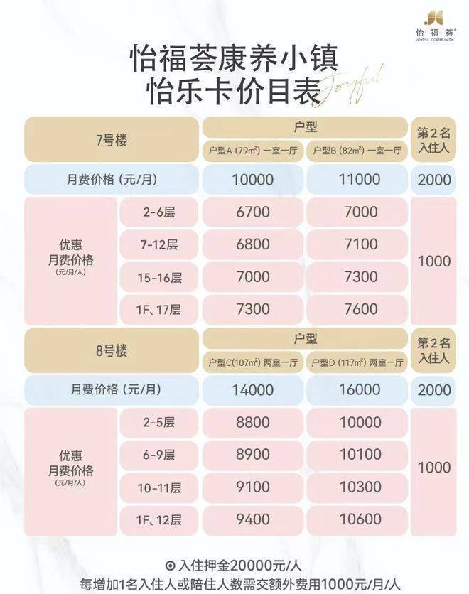 怡福荟的收费价格在每月6000元至16000元之间,具体费用根据所选服务项目和居住条件的不同而有所差异。