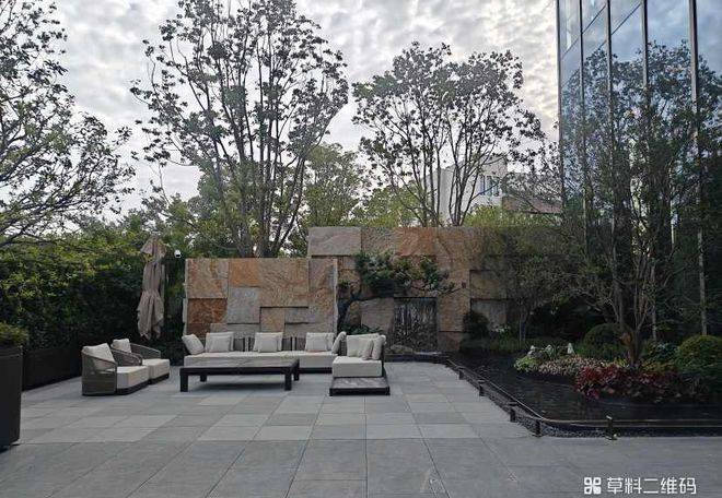 水幕迎宾景墙:一层花园归家区域的水幕景观墙设计,石材、跌水、绿植相呼应的景观细节打造。 室外迎宾穹顶:大堂向室外延伸的大型遮雨穹顶,打造酒店式迎宾落客风雨廊,仿佛在向尊贵来客招手,私享园林城市诗意栖居