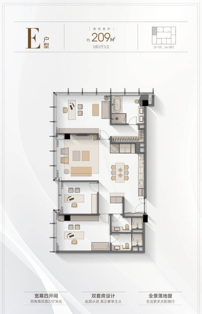 5️⃣户型优势:4.2米层高,全落地窗设计,多套房设计满足三代同堂