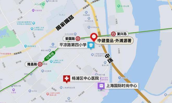 项目距离12号线爱国路站直线约400米,步行可达,这在杨浦东外滩一众不靠轨交的项目中是非常难得的。