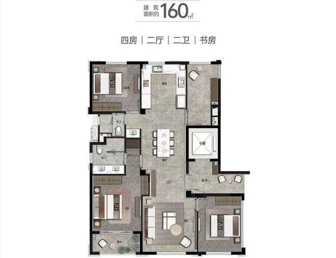 建面约160㎡ 4房2厅2卫▼