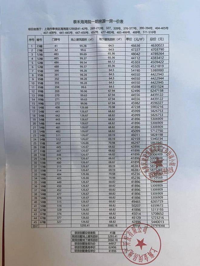 一房一价表
