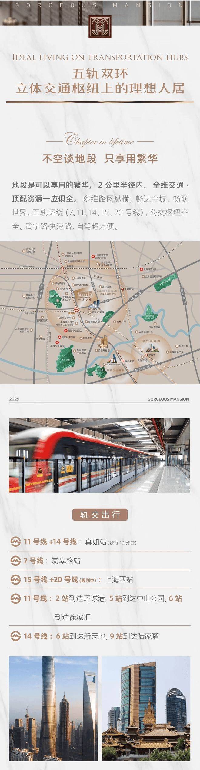 项目位于普陀真如板块,周边五轨环绕,距离11号线、14号线真如站 , 7号线岚皋路 , 15号线铜川路均在一步之遥。