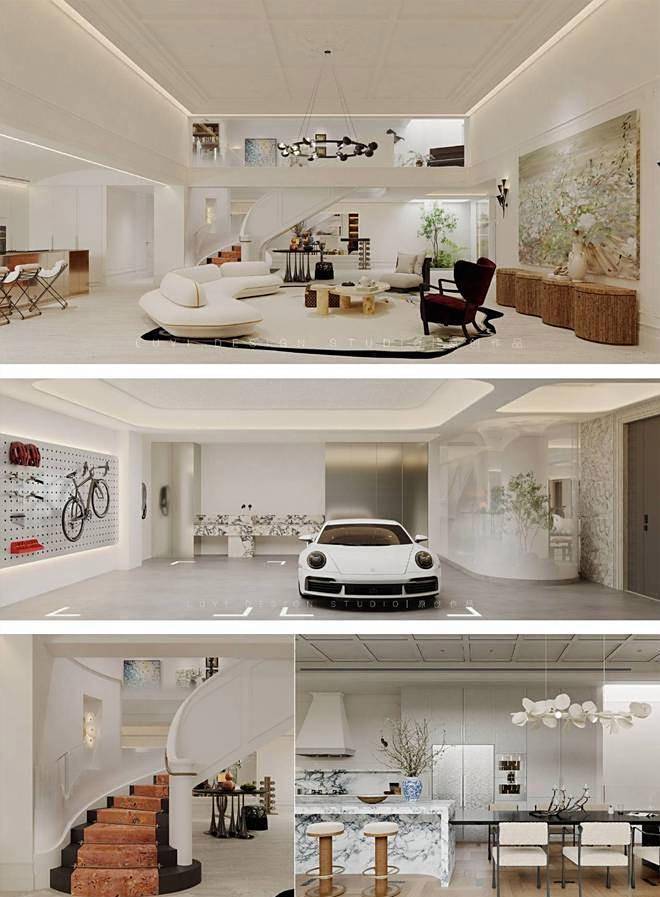 在产品设计上,天宸艺墅的合院别墅呈现出"中西合璧"的鲜明特色。建筑外立面采用石材、铝板与玻璃幕墙的组合,通过竖向线条和坡屋顶设计展现现代简约风格,而内部空间布局则借鉴了传统四合院的围合理念。主力户型为建筑面积约210-260平方米的叠拼合院,通过"前庭后院"的立体院落设计,实现了"空中庭院"的创新概念。以一套典型的边套户型为例,地上三层包含客厅、餐厨空间及三间卧室,地下层则规划为多功能娱乐区,通过约6米挑高的下沉式庭院解决采光难题。这种"地上居住+地下社交"的功能分区,精准契合了高端客群对私密性与社交性并存的需求。