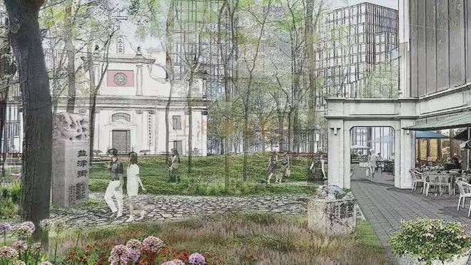 同时因地制宜,完整保留天主教堂历史风貌,修缮商船会馆历史建筑,打造滨江文化艺术广场,三大人文艺术空间交互共同呈现董家渡地区深厚的历史文化内涵