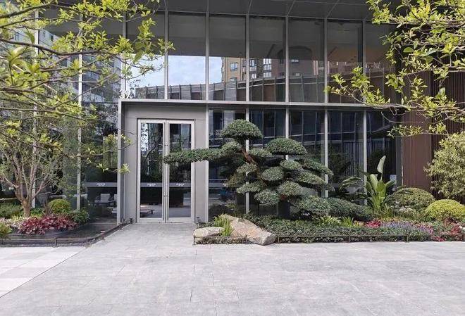 水幕迎宾景墙:一层花园归家区域的水幕景观墙设计,石材、跌水、绿植相呼应的景观细节打造。 室外迎宾穹顶:大堂向室外延伸的大型遮雨穹顶,打造酒店式迎宾落客风雨廊,仿佛在向尊贵来客招手,私享园林城市诗意栖居