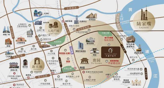 黄浦区轻奢不限购公寓-豫园商圈核心腹地,外滩地标群,与陆家嘴金融城隔江相望,形成“老城厢-外滩-陆家嘴”黄金三角区