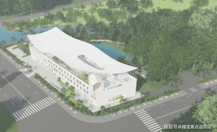 建筑整体以矩形体量呈现,屋顶融入“水、飘带、浪花、船”的意象,形似停靠在岸边的帆船,寓意“健康彼岸”。内部空间布局强调通透性与舒适性,通过横向引水、纵向补光的设计手法,使水面波光与自然光线交织,形成动态的疗愈场景。
