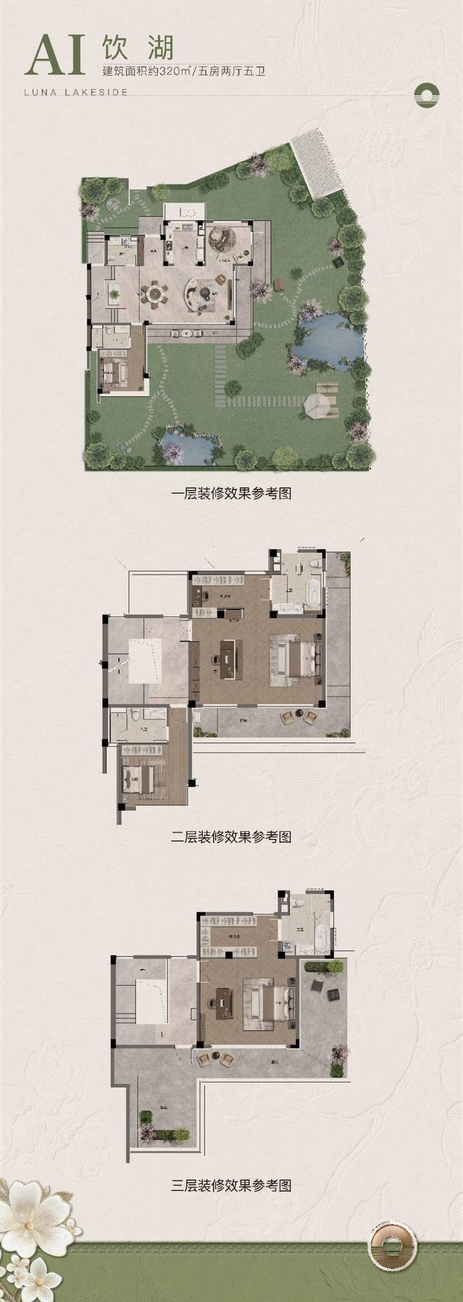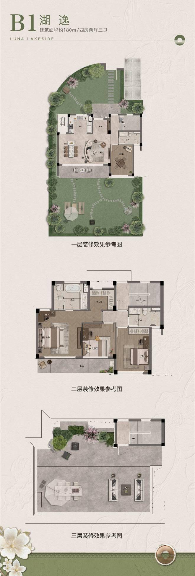 最大花园近400㎡,一楼檐廊听雨,三楼露台赏花,上庭下院,每一层都有延伸生活的花园空间。