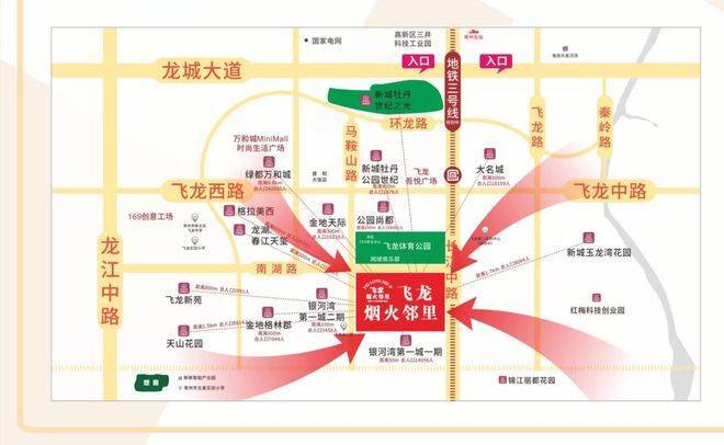 我们项目位于常州市新北区长江中路和南湖路交汇处,而我们项目刚好位于新北区核心位置飞龙板块,周边基本都是住宅区且区块内已没有空置地块,在这北面就是飞龙体育公园以及吾悦广场,万和城时尚生活广场项目旁边人口密度高。
